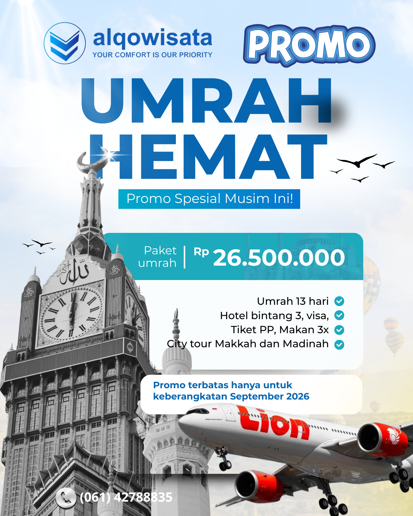 - Pembatalan < 1 Minggu Sebelum Keberangkatan Umrah Dikenakan Biaya Administrasi Sebesar 100% Dari Harga Paket Umrah